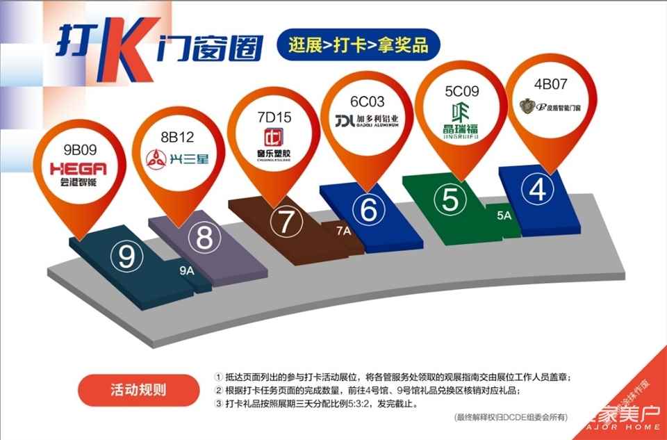 展会现场不仅有海量门窗新品等重磅亮点,更有超给力的逛展打卡福利等大家来解锁 ——只要抵达页面列出的参与打卡活动展位,将各管服务处领取的观展指南交由展位工作人员盖章,根据打卡任务页面的完成数量,前往4号馆、9号馆礼品兑换区核销对应礼品,数量有限,先到先得!
