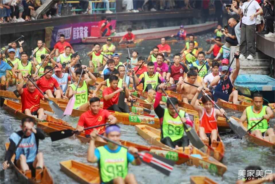 150 余条龙艇在 “九曲十三弯” 赛道上演速度与激情、现场观众纷纷加入龙船体验感受扒桨破浪的酣畅、风味独特的岭南龙船饭咸香软糯……