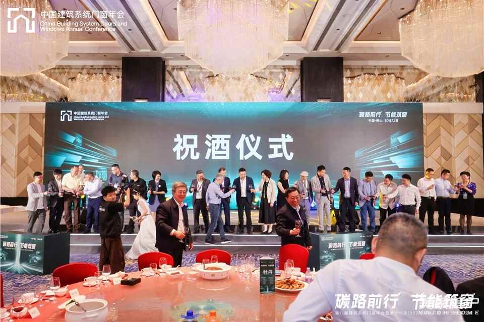 最后,出席“两会”的主办、独家冠名、承办、协办、支持单位领导全联房地产商会副会长兼节能门窗分会会长、中国建筑节能协会系统门窗分会名誉主任委员、轩尼斯实业有限公司董事长曾庆伟,全联房地产商会节能门窗分会名誉会长、中国建筑节能协会系统门窗分会名誉主任委员、北京米兰之窗节能建材有限公司董事长马俊清,全联房地产商会节能门窗分会名誉会长、中国建筑节能协会系统门窗分会名誉主任委员、广东省门业协会会长李钧洪,系统门窗专家委员会主任、中国建筑节能协会系统门窗分会主任委员、沈阳乐道建筑科技有限公司总经理胡宝升,全联房地产商会节能门窗分会常务会长、中国建筑节能协会系统门窗分会执行主任委员、广东伟业铝厂集团有限公司董事、总经理李伟萍,全联房地产商会节能门窗分会常务会长、中国建筑节能协会系统门窗分会常务主任委员、广东坚朗五金制品股份有限公司董事、副总裁白宝萍,系统门窗专家委员会执行主任、中国建筑节能协会系统门窗分会专家智库组长、泰诺风保泰(苏州)隔热材料有限公司总工程师刘军,中国建筑节能协会候任副总工程师、系统门窗分会专家智库执行组长、系统门窗专家委员会执行主任王盛坤,全联房地产商会节能门窗分会执行会长、佛山市荣宫源科技有限公司(富奥斯门窗)董事长潘慧玲,全联房地产商会节能门窗分会常务会长、中国建筑节能协会系统门窗分会副主任委员、广州集泰化工股份有限公司总经理邹珍凡,全联房地产商会节能门窗分会常务会长、中国建筑节能协会系统门窗分会副主任委员、佛山市英辉铝型材有限公司总经理、希洛建筑科技(广东)有限公司董事长谭永汉,全联房地产商会节能门窗分会常务会长、中国建筑节能协会系统门窗分会副主任委员、铭帝集团有限公司总裁邓春平,全联房地产商会节能门窗分会常务会长、山东南山铝业股份有限公司常务副总经理马军星,全联房地产商会节能门窗分会执行监事长、中国建筑节能协会系统门窗分会副主任委员、天津艾隆科技开发有限公司董事长史宏伟,系统门窗专家委员会常务主任、中国建筑节能协会系统门窗分会副主任委员、大连实德科技发展有限公司总经理程先胜,全联房地产商会节能门窗分会副会长、中国建筑节能协会系统门窗分会副主任委员、山东雷德数控机械股份有限公司董事长张爱民,全联房地产商会节能门窗分会副会长、中国建筑节能协会系统门窗分会副主任委员、山东佰亿缘门窗有限公司董事长侯胜磊,全联房地产商会节能门窗分会副会长、中国建筑节能协会系统门窗分会副主任委员、济南天辰智能装备股份有限公司总经理周倩,全联房地产商会节能门窗分会副会长、黄石市鸿福新材料有限公司总经理黄岩,全联房地产商会节能门窗分会副会长、中国建筑节能协会系统门窗分会副主任委员、佛山市南海易乐工程塑料有限公司董事长曾强,全联房地产商会节能门窗分会副会长、广东捌柒零零品牌策划有限公司董事长张聪,深圳好博窗控技术股份有限公司总经理王广彦,全联房地产商会节能门窗分会副会长、佛山市皮卡丘企业管理咨询有限公司董事长皮文杰,全联房地产商会节能门窗分会副秘书长、广州白云科技股份有限公司市场总监李玢明上台敬酒 ,全联房地产商会副会长兼节能门窗分会会长、中国建筑节能协会系统门窗分会名誉主任委员、轩尼斯实业有限公司董事长曾庆伟致辞并宣布晚宴开始。 大家欢聚一堂,共叙友谊,畅想未来!