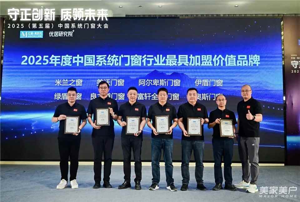 为表彰对系统门窗行业做出杰出贡献的企业与个人,树立行业榜样,2025(第五届)中国系统门窗大会特别设置“2025年度红星美凯龙门窗品类A类品牌”、“2025年度中国系统门窗行业最具加盟价值品牌”、“2025年度中国系统门窗行业领军品牌”、“2025年度中国系统门窗行业领袖人物”、“2025年度中国系统门窗行业创新先锋”、“2025年度中国系统门窗行业优秀供应链”奖项,引领行业形成比技术、比质量、比服务的良性竞争氛围。(获奖名单详见文后附件)。