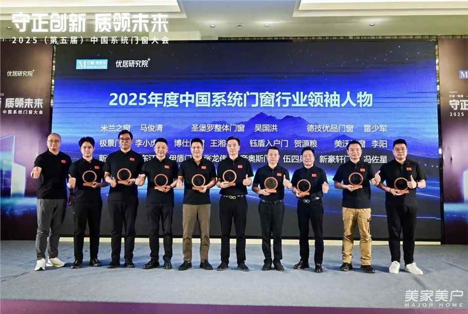 2025年度中国系统门窗行业领袖人物:米兰之窗 马俊清、圣堡罗整体门窗 吴国洪、得技优品门窗 雷少军、极景门窗 李小虎、博仕门窗 王湘根、钰盾入户门 贺源粮、美沃门窗 李阳、新标门窗 黄东江、伊盾门窗 张龙伟、世豹门窗 周雨茂、帕豪门窗 张伟、沃伦门窗 车晓娜、绿盾门窗 郑海峰、易欧思 丁三莲、安格尔门窗 罗汉标、阿尔卑斯门窗 常宝琛、伊博莱门窗 范贵萍、叶阳阳光房 熊诗才、帝奥斯门窗 伍四兵、新豪轩门窗 冯佐星、皇派门窗 朱福庆、富轩全屋门窗 李昌安。(排名不分先后)。