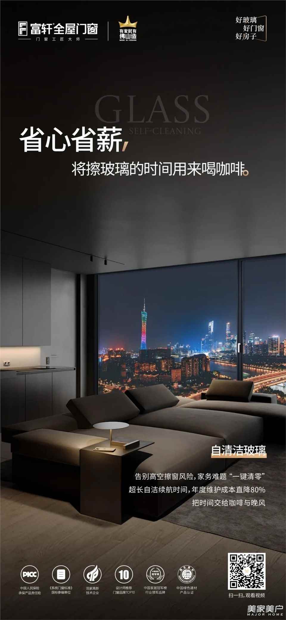 富轩的高客单价同样表现在消费升级驱动产品重构上,例如富轩一直致力于推动“恒洁门窗”的普及,新一代消费者只需在每平方米门窗多支付100-200元,配置自清洁玻璃,让门窗玻璃表面的二氧化钛自洁膜层,自动分解有机污染物,随雨水冲刷干净,免去高楼层擦玻璃的烦恼,按照35㎡的门窗玻璃来计算,每年便可以省下3500元擦玻璃的费用。