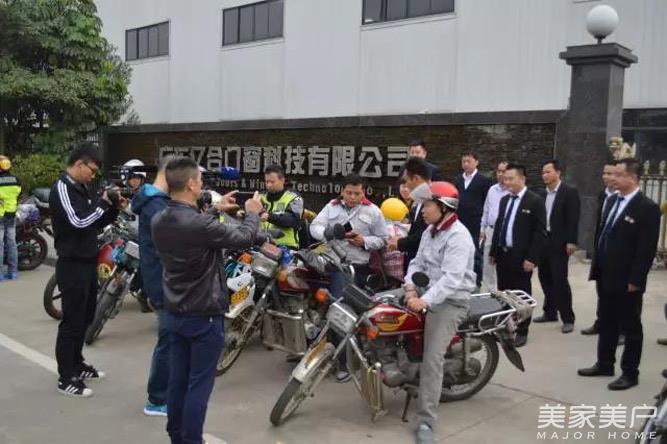 2017年1月10日早上9时整,“百万摩托大军”回家过年正式从广东亿合门窗科技有限公司出发,中国中央电视台联合佛山电视台出动数十台拍摄车,多架直升飞机,全程跟踪拍摄。亿合门窗常务副总经理胡超先生带领公司高管团队一起到公司大门口为“百万摩托大军”送行。再三叮嘱摩托大军务必一路注意安全,平安到家。