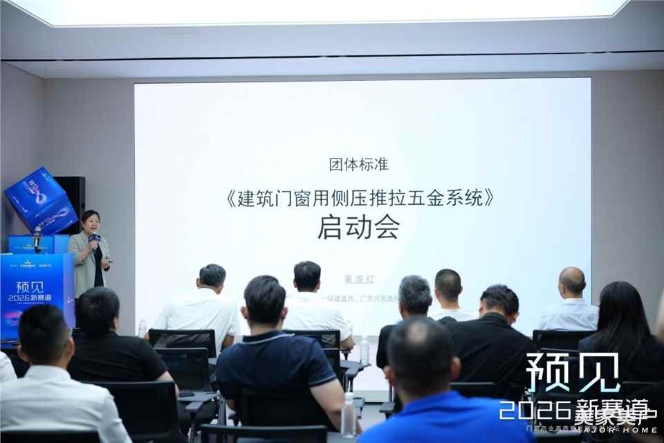 专题论坛后,佛山市家居产业联合会副会长兼秘书长李国尧,广东省门业协会会长、派雅门窗董事长李钧洪,广东省定制家居协会秘书长曾勇,深圳派阁五金董事长傅海,圣堡罗家居集团董事长吴国洪,德技优品门窗董事长雷少军,轩尼斯门窗副总裁余家优,享裕安门窗总经理马皓华,正金门窗总经理刘科特,中国建筑材料流通协会系统门窗委员会副秘书长申畅共同启动发布了《建筑门窗用侧压推拉五金系统》团体标准。高级工程师、一级建造师蔺淑红对其进行了详细解读,这不仅是一本可指导辨别优良、安全、实用的侧压推拉五金系统产品的手册,更标志着行业向更标准化、更专业化、更高品质化迈出了有力一步。