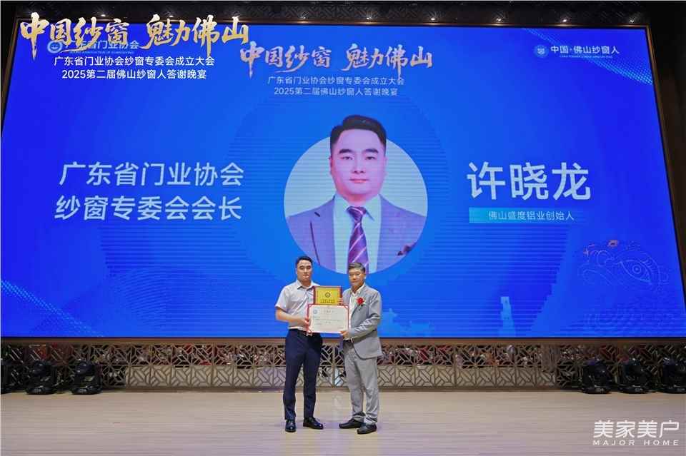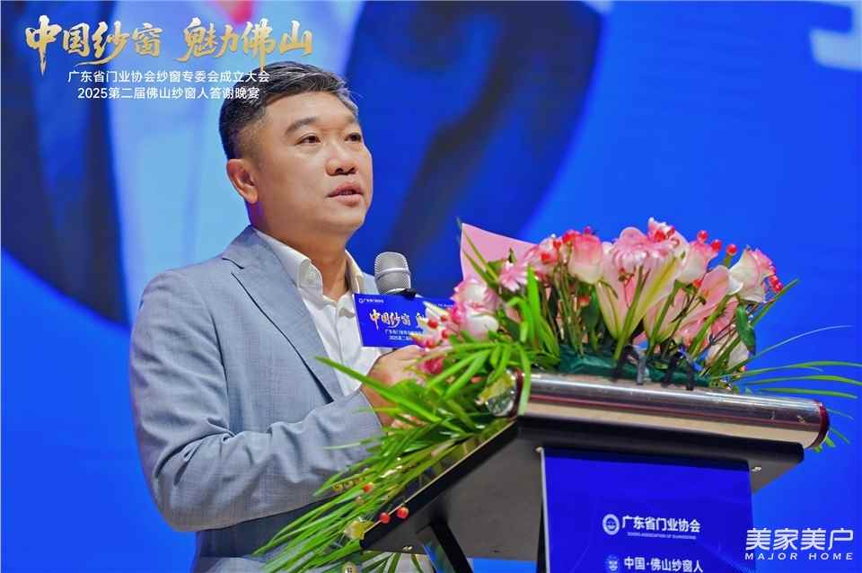 新当选广东省门业协会纱窗专委会会长、佛山盛度铝业创始人许晓龙在就职发言时表示,“非常荣幸当选广东省门业协会纱窗专业委员会会长,更倍感责任重大,未来将秉持服务行业、服务会员的宗旨,倾听企业诉求,维护行业权益,凝聚全体会员的智慧和力量,让纱窗专委会成为推动行业进步的坚实平台,为广东门业的高质量发展注入新动力。”
