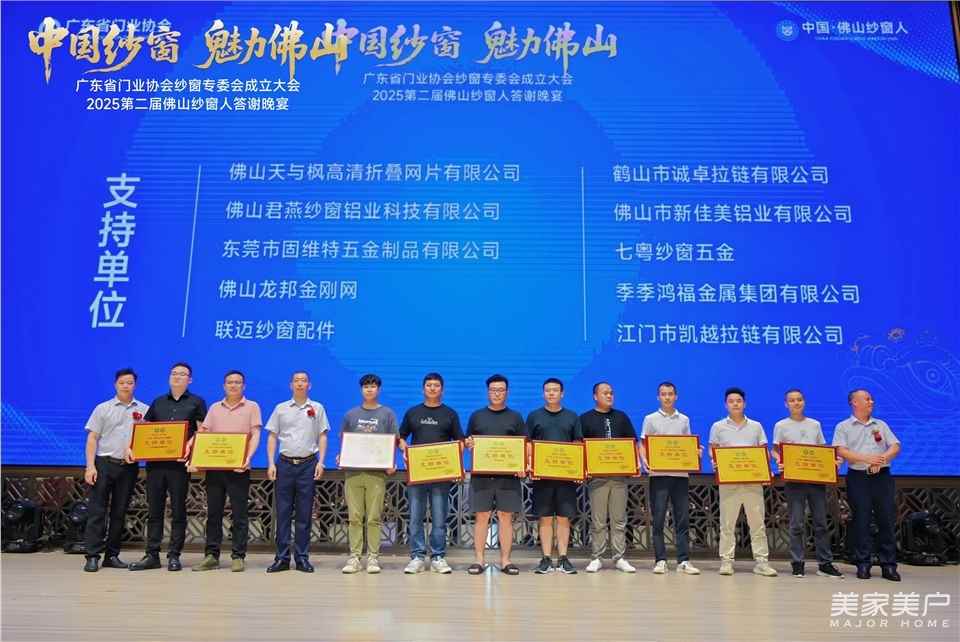7 月 8 日,“中国纱窗・魅力佛山” 广东省门业协会纱窗专委会成立大会暨2025第二届佛山纱窗人答谢晚宴在佛山雅汇悦豪国际酒店盛大举行。这场聚焦纱窗产业未来的盛会,不仅是一次行业力量的集结,更是广东纱窗产业迈向规范化、集约化发展的关键节点,为佛山乃至全国纱窗领域注入强劲动能。