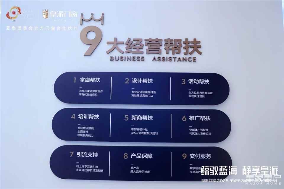 此外,皇派门窗为强力支持经销商发展,特设专业帮扶团队,建立涵盖九大模块的经营帮扶体系,提供贯穿全年的365天专属帮扶规划;投入真金白银,实施装修补贴、广告补贴、样板专项补贴、促销让利补贴等重磅扶持政策,全力助推经销商成长壮大,共赢财富机遇。