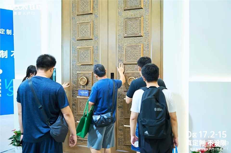 堪称17.2号展馆的“镇馆之门”,以2米宽度与4米高度勾勒出震撼的视觉轮廓,让每位来到钰盾展馆观摩的客商纷纷见证了入户门艺术的全新境界。此门历经13道精密工序匠心打磨,搭载断桥系统结构实现超强保温隔热和隔音降噪性能,给予居者更高品质的生活享受。航空铝箔板填充门芯铸就铜墙铁壁,配合自主研发的不锈钢精铸双轴暗铰链,最大承重达500KG且支持165°超大开合角度。经超20万次开闭测试仍稳定如初,可满足大尺寸定制需求,包边、墙厚和门坎都可一一定制,已成为现代高端大宅的入户首选。