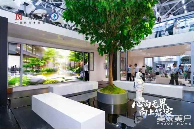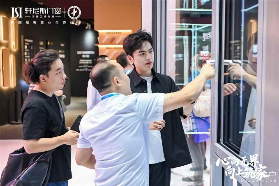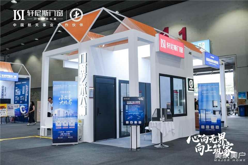 尤为引人注目的是,轩尼斯门窗作为中国航天事业合作伙伴,将航天精神和航天文化融入展馆的打造和产品创新中,其中主展馆(D区19.2-05)以“航天·展翅领航未来人居新篇”为构想,将航天元素与人居空间设计深度融合,外观打造出“展翅翱翔”的航天机翼造型,尽显科技与家居美学的魅力,吸引大量观众围观打卡。