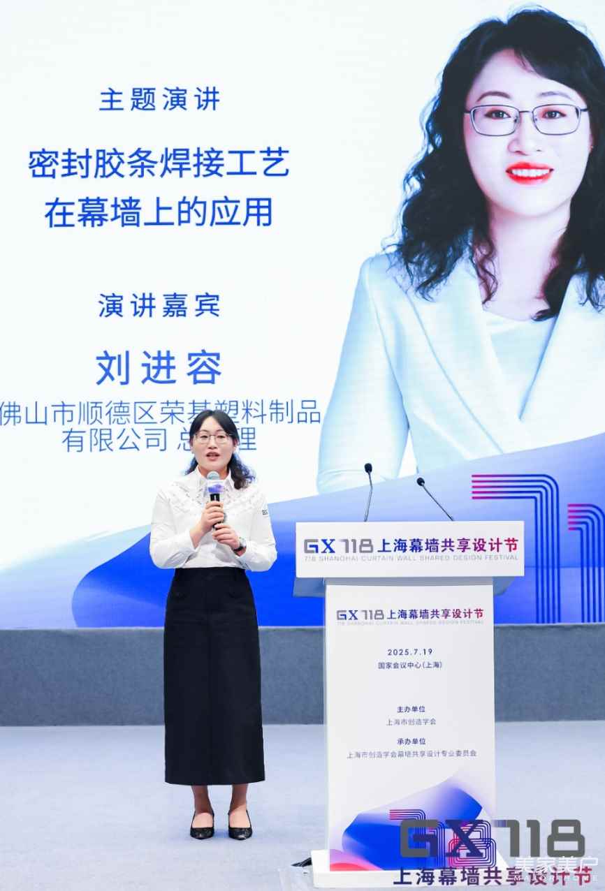 荣基胶条总经理刘进荣女士,带来“密封胶条焊接工艺在幕墙上的应用”主题演讲,向与会领导和嘉宾,详细解读了密封胶条焊接工艺在幕墙上的应用。
