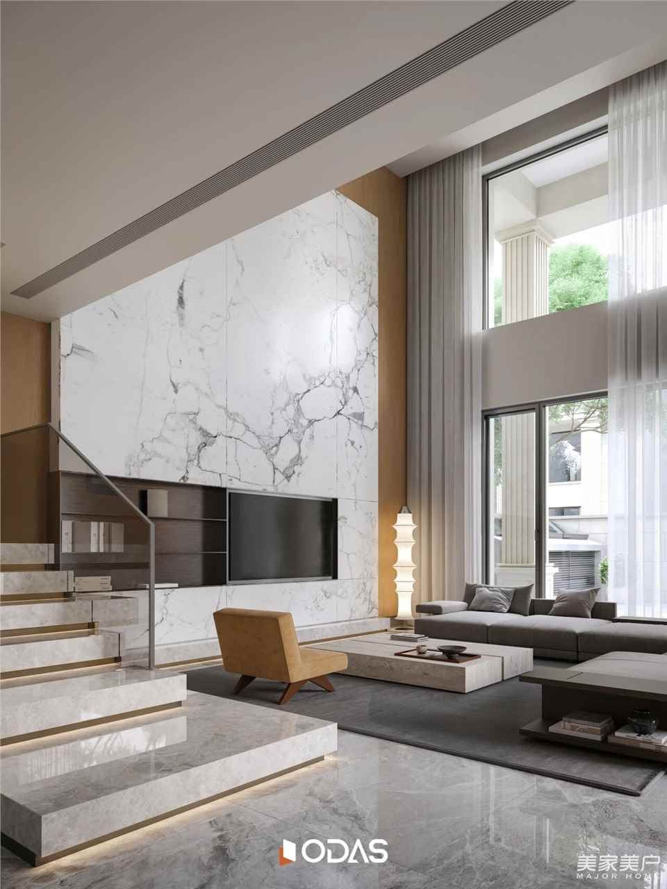 设计师认为,空间是骨骼,硬软装则是内在气韵。为契合业主年轻个性化精神需求,整体布局以“平衡共生”为纲,材质选择透着对“自然”的敬畏,温润洞石与木质材料搭配,与门窗金属材质形成平衡对话。艺术茶几、雕塑摆件等生活气息物件有序分布,空间去除多余装饰,回归纯粹休憩氛围和静谧感受,满足业主功能与形式并存的需求。