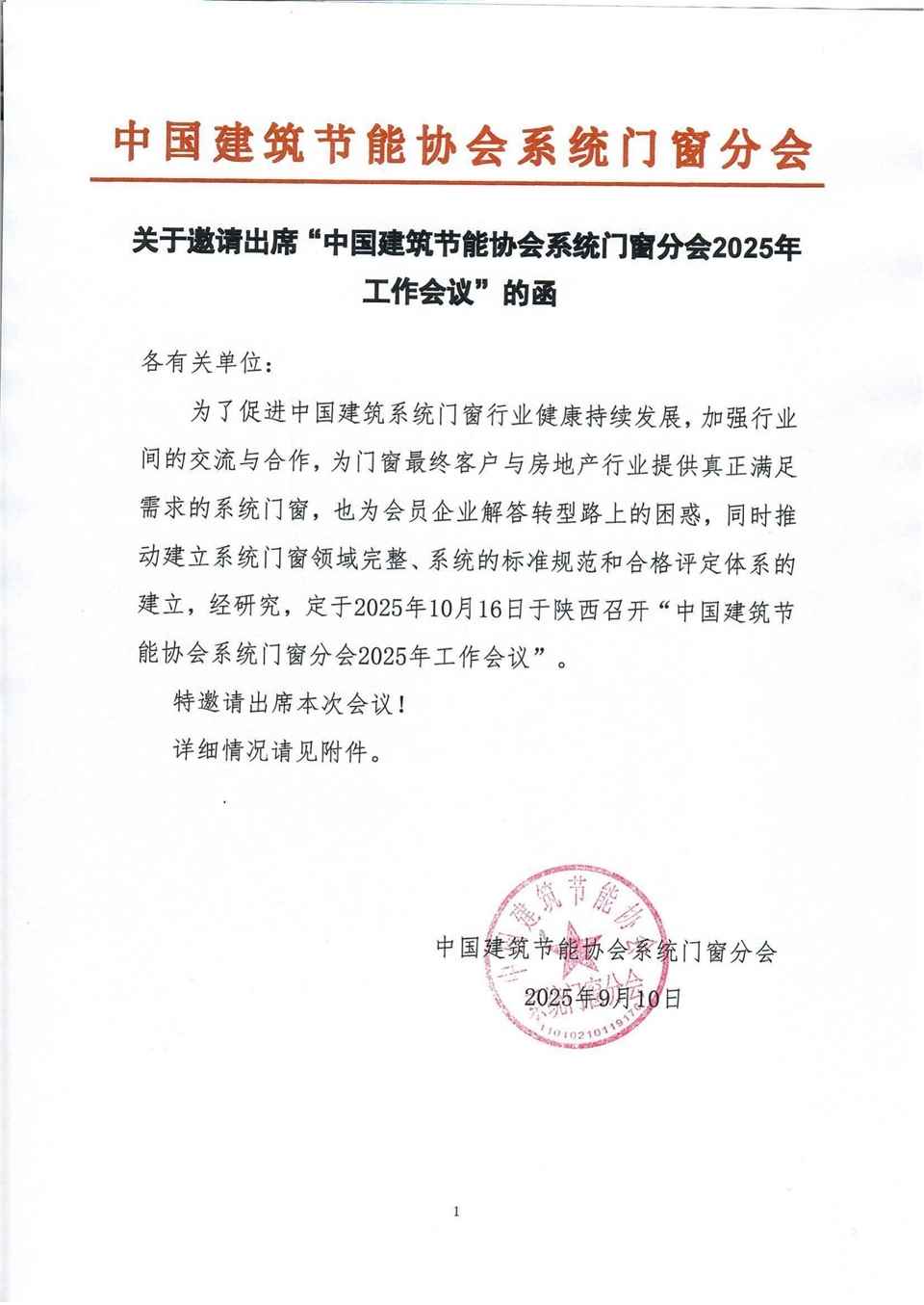 关于邀请出席“中国建筑节能协会系统门窗分会2025年工作会议”的函