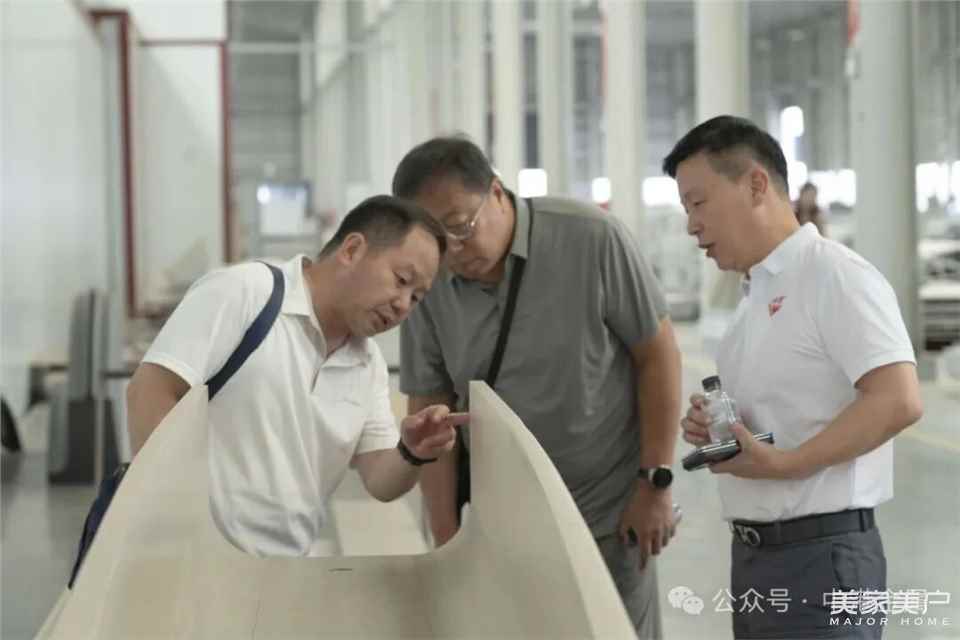 王晓军会长在参观中港金属生产基地后,对其产能规模与综合实力表示高度赞赏。总占地超650亩、年产能超650万㎡、年产值超20亿元的规模充分体现了公司的行业龙头地位,其庞大的生产体系和完善的产品链展现了深厚的制造功底。王晓军会长特别称赞中港金属将创新设计高效转化为优质产品的工程能力,并充分肯定了企业强劲的发展态势。她表示:"中港金属的生产规模和发展水平超出了我们的预期,要继续挖掘并展现龙头企业的实力与担当。"