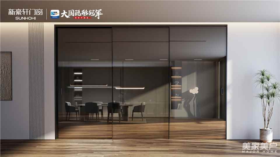 新豪轩门窗智能全屏联动门采用极窄1.5mm边框与全屏视觉设计,大幅提升玻璃见光面,视野开阔通透,既增强室内采光;搭载双缓冲吊轮与下防摆轮系统,实现轻柔、静音、平稳的门扇开合,有效避免夹伤风险,无地轨设计,降低磕碰摔倒风险,提升使用安全感;值得一提的是,还可选配磁悬浮或动力双皮带智能电机,通过遥控、手机APP或语音助手等多种方式实现远程操控与自动启闭,极大减轻了老人的操作负担。让适老设计融入日常家居场景,既守护老年人安全,也优化全家人的生活体验。