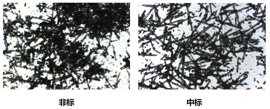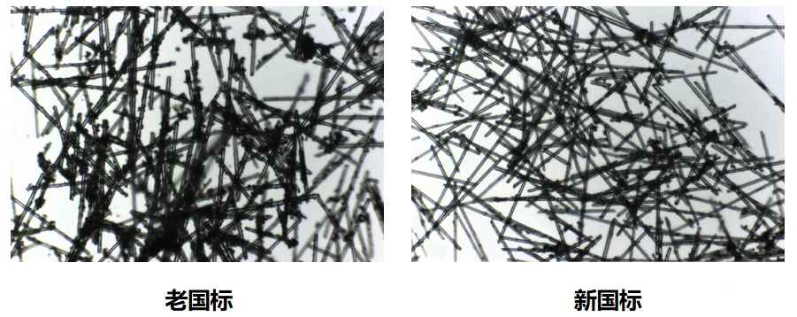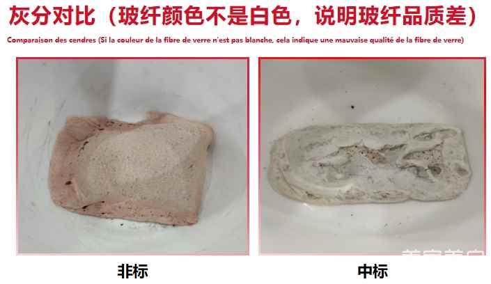 目视观察玻璃纤维颜色, 应呈白色;显微镜下观察玻璃纤维形态,应透明、细长。玻璃纤维不应有夹杂、短碎等缺陷。玻纤短碎有杂质,说明使用不合格的回收料。
