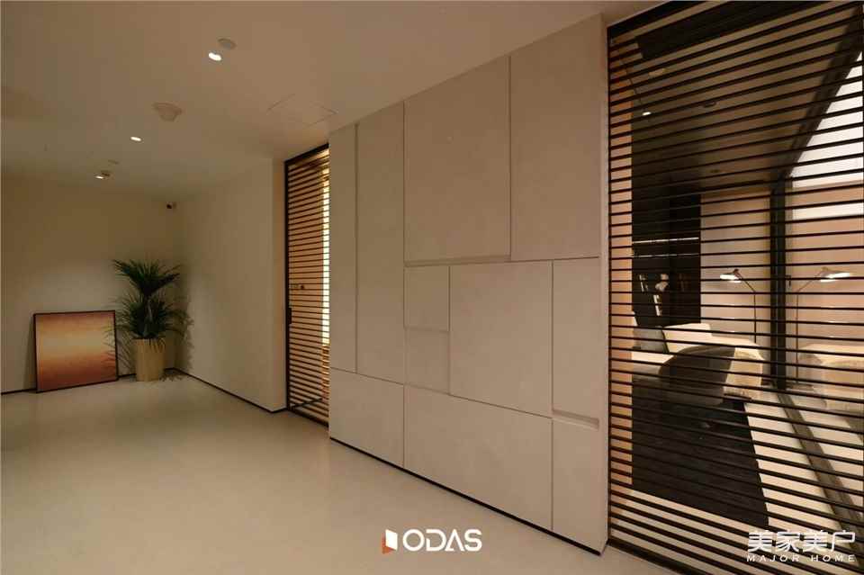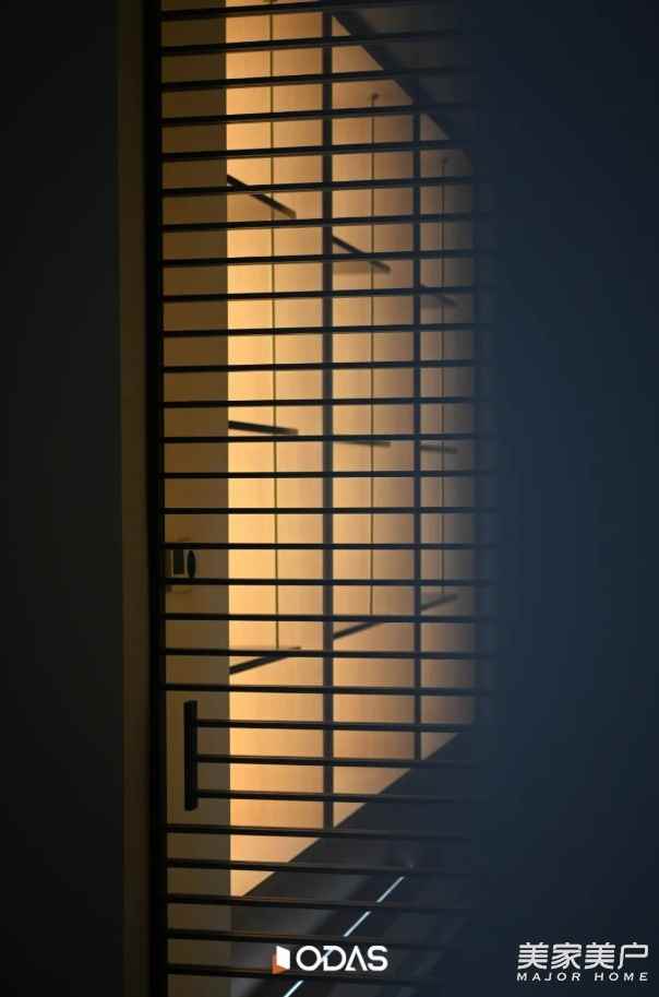 ☆欧大师悦居40极窄吊趟门:格栅黑胡桃色为空间增色,吊趟设计顺滑流畅,无轨道积尘,扫地机器人轻松出入清洁;搭配用格栅开合营造秩序,与建筑几何构成相呼应,将光线过滤柔化,引光入室。