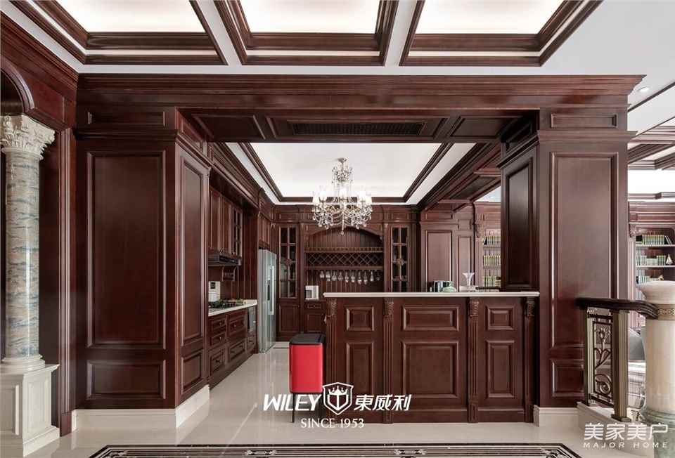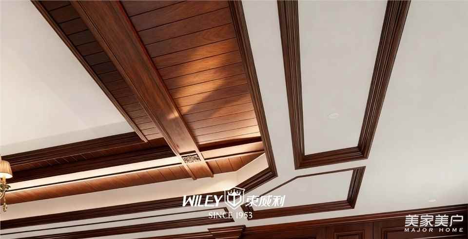 深色实木护墙与吊顶,是东威利传统榫卯工艺的现代演绎。采用复合结构,既保证实木在温湿度变化中结构稳定,又实现视觉无缝质感。