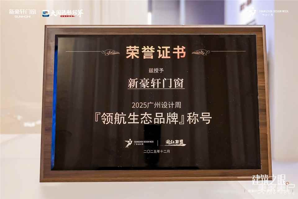 12 月 6 日,新豪轩门窗再添殊荣,获泛家居网红联盟授予 “2025 广州设计周领航生态品牌” 荣誉称号,彰显品牌在行业生态中的引领地位。