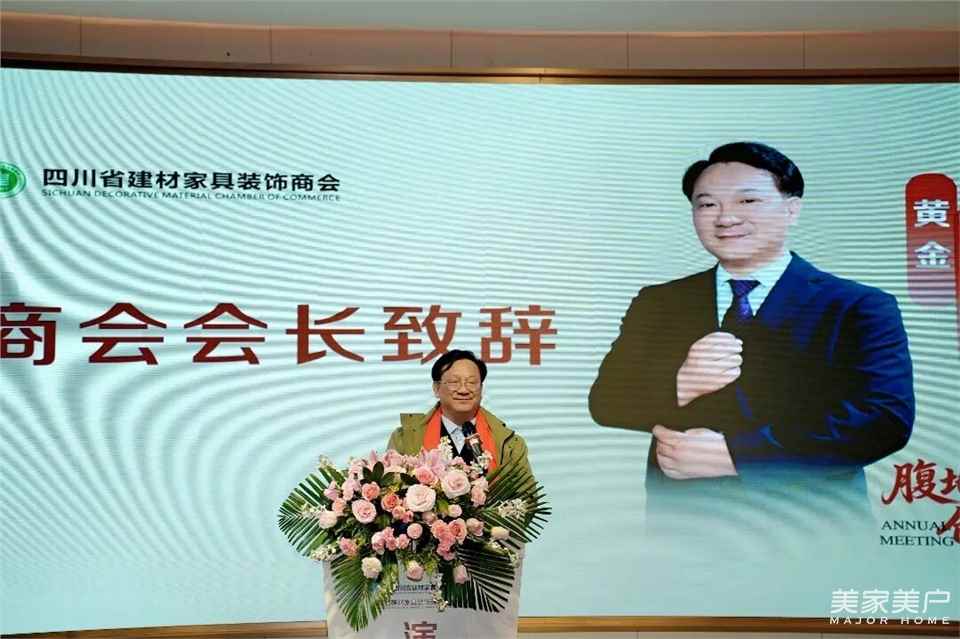 晚宴上,会长黄金发表了热情洋溢的致辞。他首先代表商会向全体与会嘉宾致以诚挚的感谢与新春的祝福。黄会长深情回顾了商会与行业在过去一年中共同经历的挑战与取得的成就,他指出,在复杂多变的市场环境中,川渝建材家居人展现出的韧性、智慧与协作精神,是行业稳中求进、持续发展的最宝贵财富。