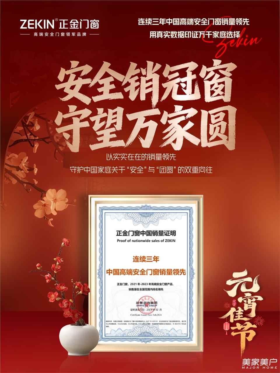 ✅ 连续3年中国高端安全门窗销量领先