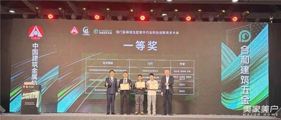 随后,第九届建筑门窗配套件行业科技创新论文颁奖环节中,合和建筑五金多位高管受邀为获奖作者颁奖,共同见证行业科研实力的绽放。