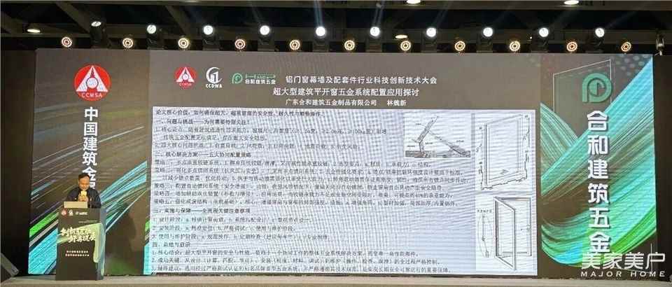 随后,大会进入核心的技术分享环节,合和建筑五金深度参与其中,既带来实战干货,也搭建起行业交流的桥梁。 合和建筑五金技术经理林魏新率先登台,以《超大型建筑平开窗五金系统配置应用探讨》为题,结合工程案例,深入剖析了超大型平开窗五金系统的设计要点、配置逻辑与应用前景,为现场同仁提供了宝贵的实践参考。