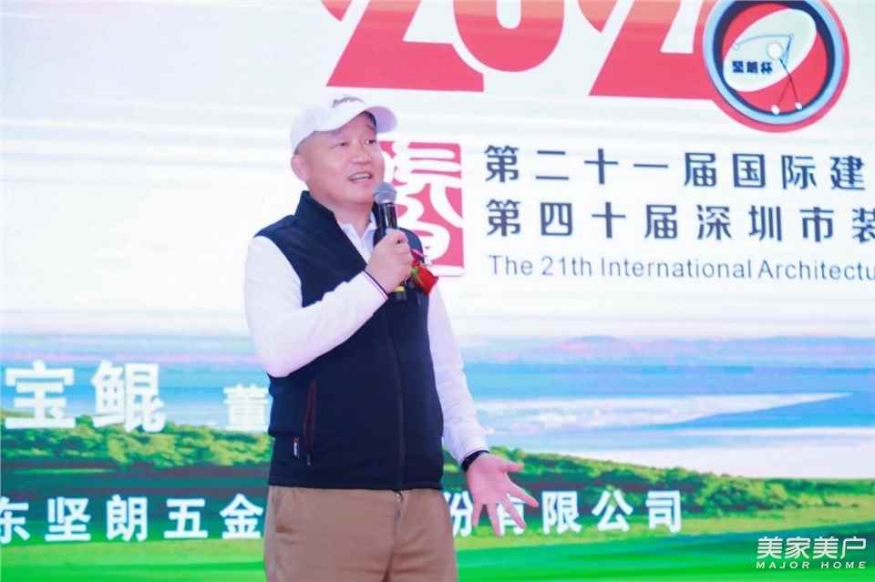 开球仪式上,坚朗公司董事长白宝鲲登台致辞。他向远道而来的企业家同仁们致以诚挚欢迎,并希望大家在这春和景明、绿意盎然的好天气里,放松心情,尽情挥杆,享受高球运动的纯粹乐趣,共度一段美好而难忘的时光。