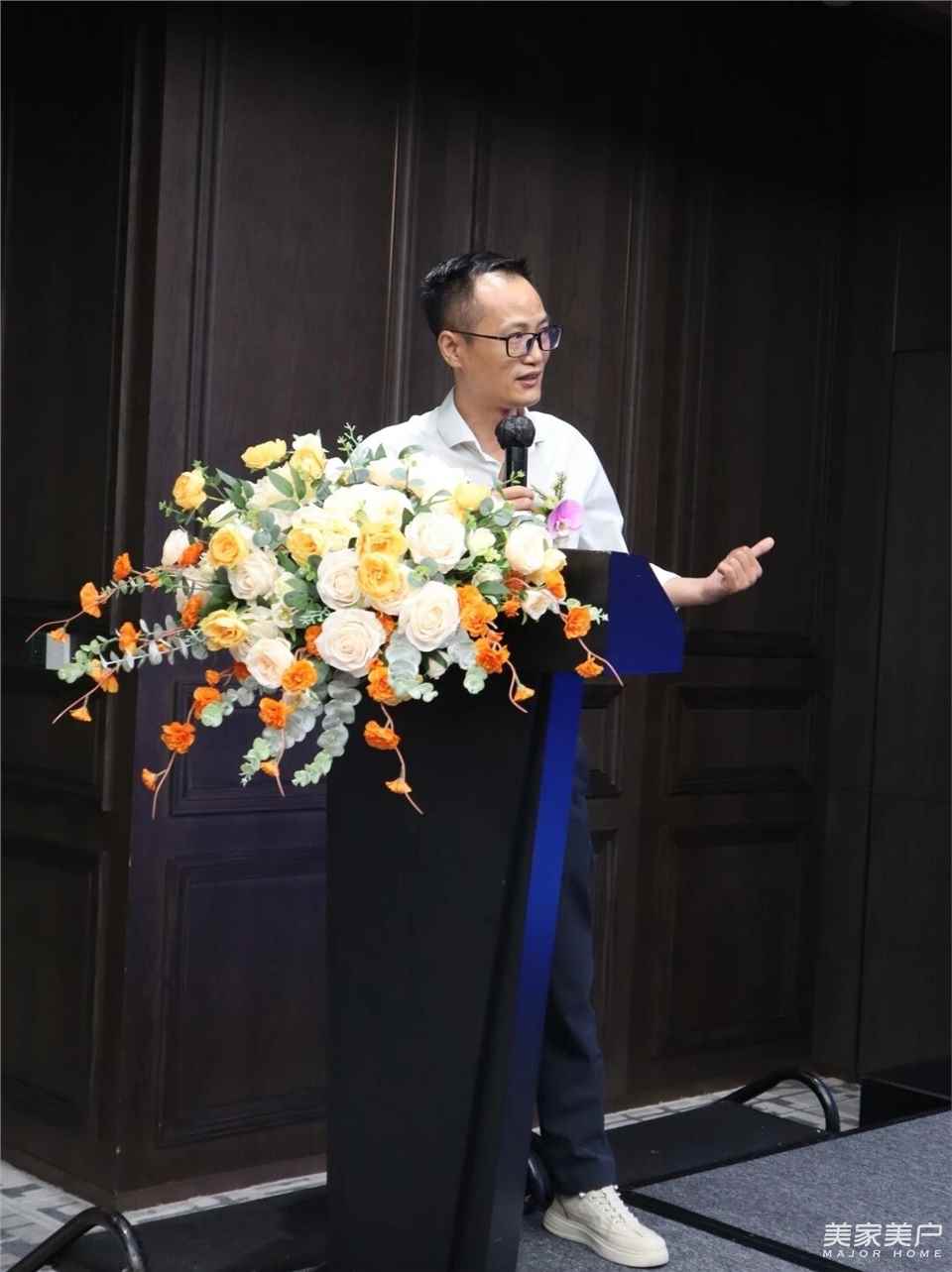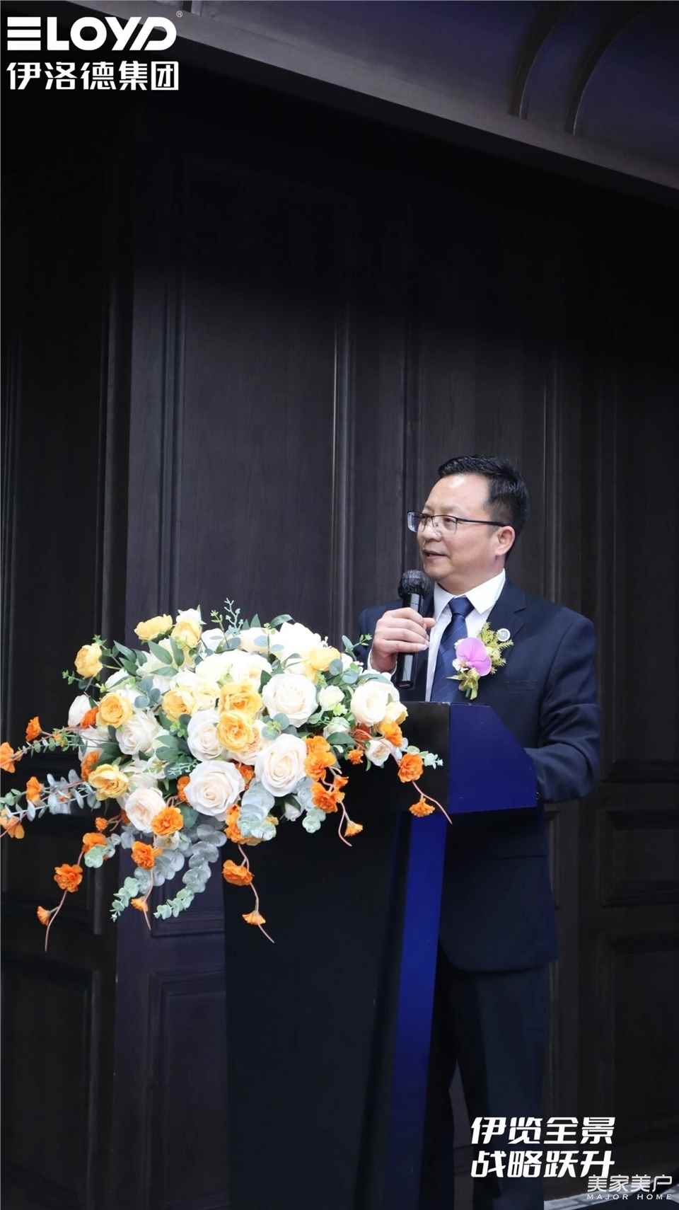 广州帷道品牌营销董事长吴学军老师随后登台,深度解读伊洛德全新品牌战略定位。他从行业痛点出发,层层剖析,阐释了伊洛德的战略转型。