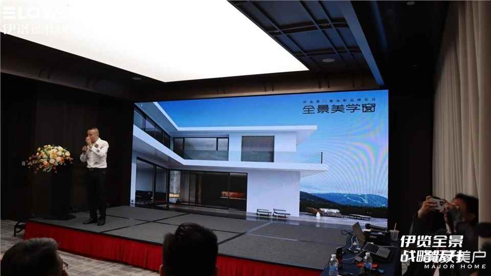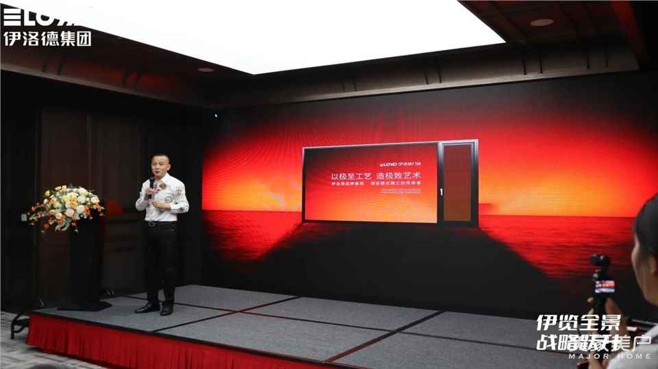 随后,在全场嘉宾的共同见证下,伊洛德门窗全新品牌战略定位发布暨3.20品牌日启幕仪式隆重举行。随着大屏幕上光芒汇聚,“伊览全景·战略跃升” 八个大字璀璨呈现,标志着伊洛德正式迈入品牌发展新纪元。