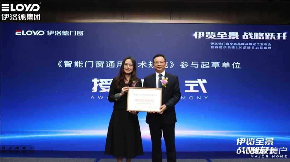 中国建筑材料流通协会整装定制与门窗幕墙专委会秘书长陈艳霞为伊洛德集团颁发的《智能门窗通用技术规范》参与起草单位授牌仪式隆重举行。这份沉甸甸的荣誉,是对伊洛德深耕行业、引领标准的高度认可。