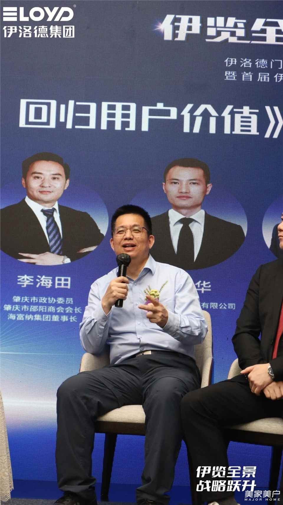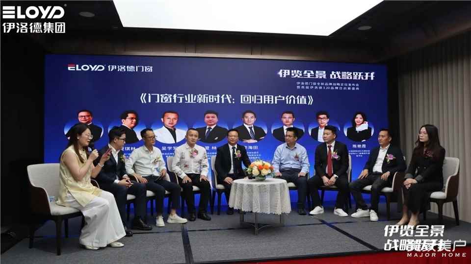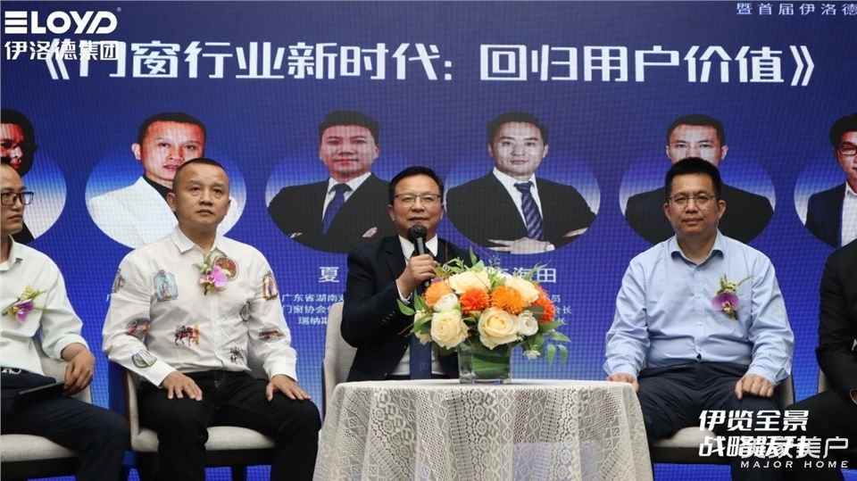 在主持人引导下,伊洛德王董事长、广东省门窗协会管秘书长、瑞纳斯集团夏董事长、海富纳集团李总、帷道吴老师、锐创田总、希美克华南区域销售总经理杨世杰,中国建筑材料流通协会秘书长陈艳霞,围绕“初心与抉择”“趋势与标准”“破局与认知”“美学与边界”“品质与协同”等话题展开深度对话。