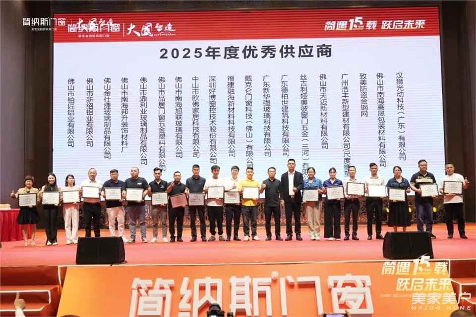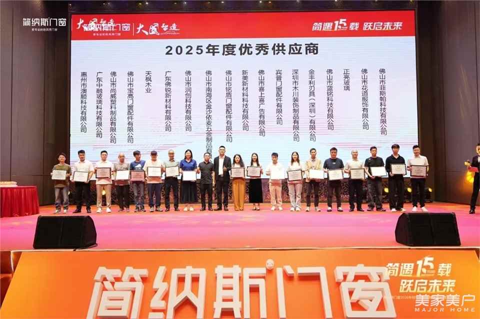 晚宴上,简纳斯门窗特别为2025年度优秀供应商颁发了奖项,感恩供应商伙伴的精诚合作与鼎力支持,携手共建品质供应链,共筑行业发展生态。