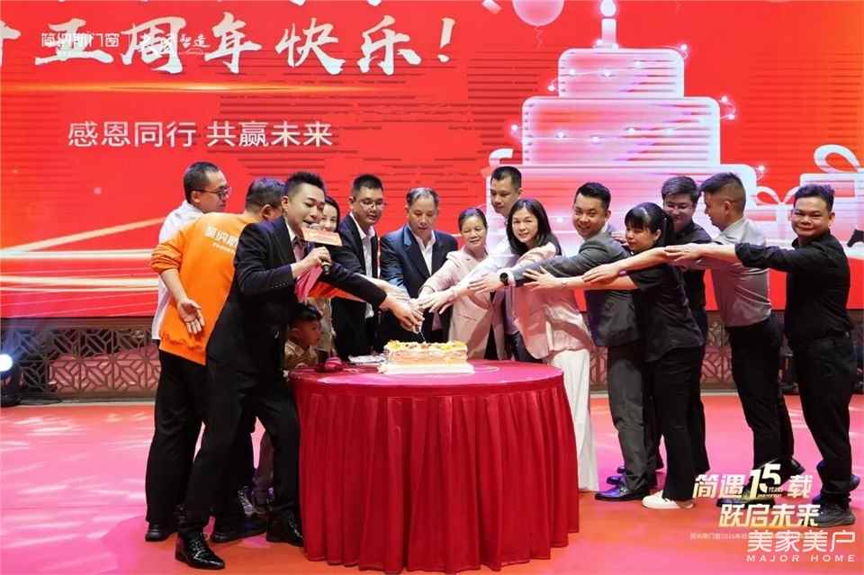 十五年风雨同舟,十五年匠心同行。在这意义非凡的时刻,简纳斯门窗高层领导团队共同登台,携手共切十五周年庆典蛋糕,举杯同庆,共祝简纳斯门窗十五周年生日快乐,愿品牌基业长青,未来蒸蒸日上,再启新程!