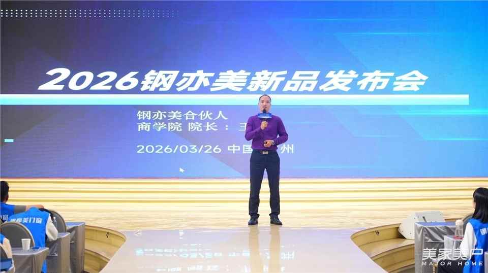 钢亦美商学院院长王泓杰带来新品发布会,重磅推出2026年度全屋门窗新品矩阵,涵盖断桥系统装甲门、不锈钢精雕装甲门、不锈钢?锌合金入户门、磁吸静音平开门、等,兼具颜值、品质与科技,满足多元化消费需求。同时现场公布重磅优惠政策,为经销商提供强大市场支持,助力终端抢占先机。