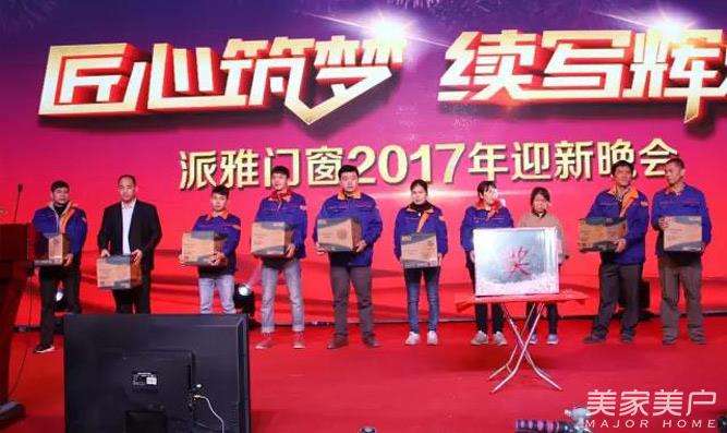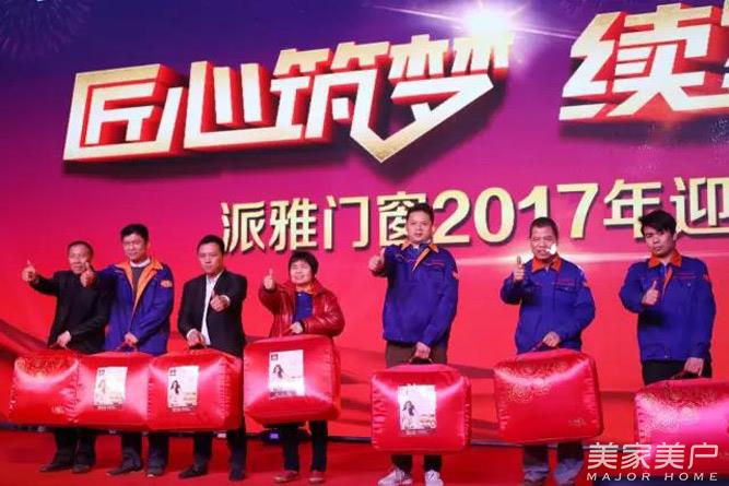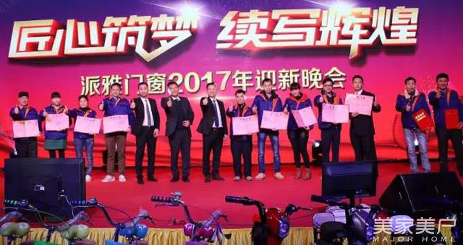 2017年1月16日,在派雅门窗总部举办了“匠心筑梦?续写辉煌”2017年迎新晚会。派雅门窗董事长李钧洪和李钧海偕同总经理易绍光、营销总经理陈海全、行政经理彭友财等企业领导和派雅家人们举杯同欢,共度良宵,喜迎新年!
