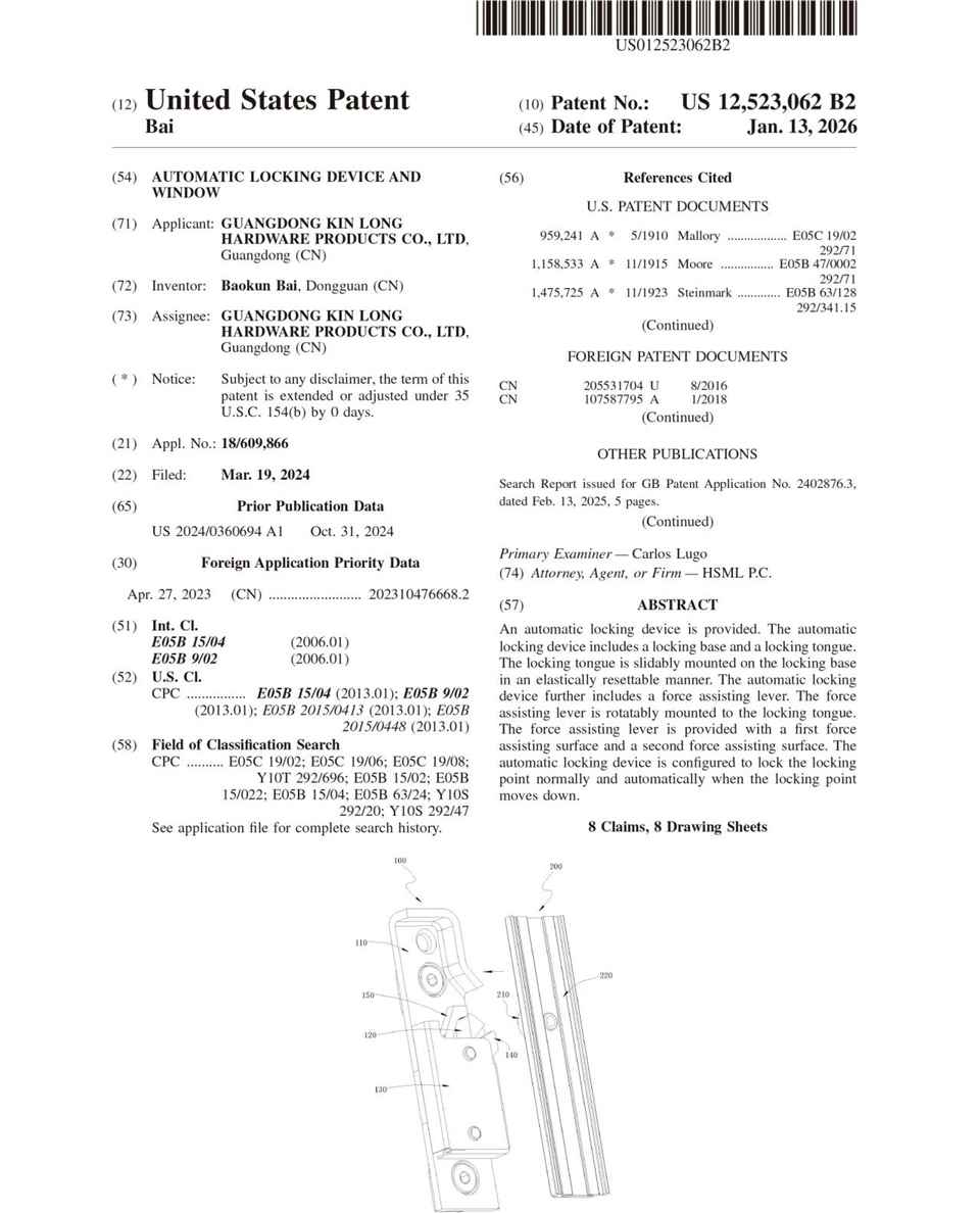 此次专利成果覆盖了国内与国际两大市场,不仅进一步完善了公司的知识产权保护体系,更彰显了坚朗五金在门窗五金系统领域的深厚技术积淀与行业先进地位。未来,坚朗五金将继续加大研发投入,以用户需求为导向,攻克更多行业技术难点,为全球客户提供更安全、更智能、更人性化的产品解决方案,以技术创新推动行业高质量发展。