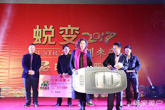 晚会中最激动人心的是表彰环节。在全场嘉宾的见证下,阳光逸彩董事长马文杰为合伙人、优秀员工颁发分红奖金和奥迪A6轿车;精彩的文艺表演与抽奖活动,让现场的观众热情洋溢。