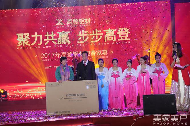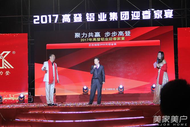 2017年1月18日,广东高登铝业集团“聚力共赢,步步高登”迎春家宴在集团总部隆重举行。高登铝业集团董事长高力登、高登铝业集团总裁高振中、高登铝业集团副总裁李婧、中国建筑金属结构协会副秘书长黄圻、广东省有色金属学会铝加工专业委员会主任卢继延,和各商协会嘉宾、高登铝业客户代表、供应商代表以及高登家人,共千余人欢聚一堂,共享高登铝业盛事!