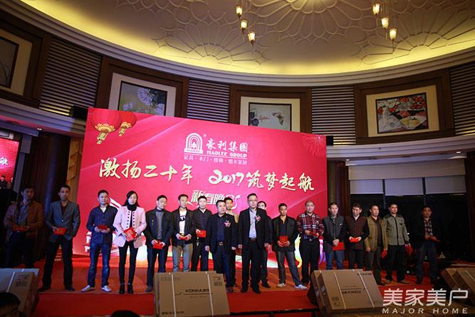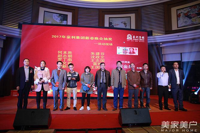 此次年会在热闹的开场舞《中国龙》的表演中拉开序幕。年会上,豪利集团董事长杜延金在致辞中说:“2016年已经过去,回首已经营20年的豪利,我感慨万千。20年来,在豪利人的辛勤努力下,以及在众多朋友们的关怀下,豪利已从一个小的作坊企业发展成为一家大型集团化企业。如今,豪利已从20年前仅有380平米的厂房、15名员工发展到现今2000多人,厂房面积15万平米的大型集团企业,这一切都离不开在座朋友、所有员工们辛勤的努力付出。20年来,豪利也取得了很多成绩与进步,已从单一生产木门转变为整体家居,备受业内外人士青睐。同时,我们邀请意大利的设计师参与到豪利的经营中来。我们的目的就是要把产品做到完美,服务好我们的客户。但目前行业仍存在很多问题需要豪利不断去摸索、完善。2017年,豪利要实现三个目标:第一,要力争使豪利的综合竞争力保持全行业稳居第一;第二是产品在销售的过程中要控制在零返工率;第三是要做到客户零投诉。2016年,豪利在全国承建了很多知名的建筑装饰工程,取得了良好的经济效益。其中,很多项目的装饰效果都超过了国外的一些知名建筑的装饰。此外,豪利在稳步发展的同时仍不忘奉献爱心,2016年已资助了山东、重庆、江苏多所学校及敬老院。2017年,我希望豪利在众多朋友的支持与全体员工的努力下,将豪利做的更好。”