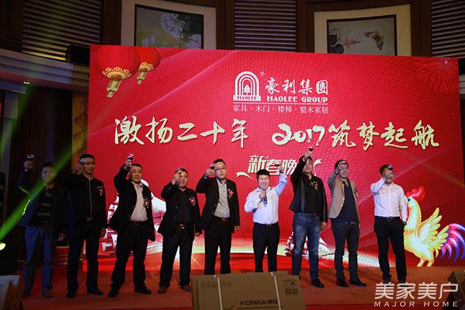 2017年1月19日,“激扬20年,筑梦起航”2017深圳豪利集团迎新春年会在深圳市宝安区福永龙腾堡酒店隆重举行。豪利集团董事长杜延金、总经理白学军、销售总监潘兴桑、企划总监张楠,深圳市南充商会领导及嘉宾,以及豪利集团旗下深圳、东莞等广东区域分厂领导与员工近千人共同参加了此次年会。美家美户家居传媒对此次活动进行了全程报道。