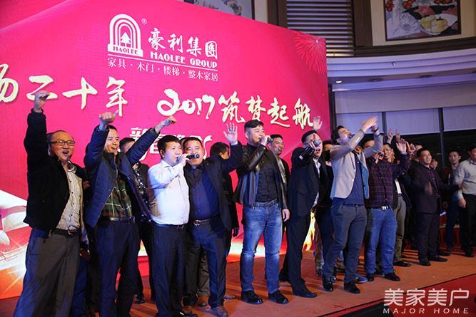 最后,豪利集团董事长杜延金、总经理白学军与豪利广东各分厂主管一起上台大合唱,唱响豪利2017,迎接豪利的新未来。