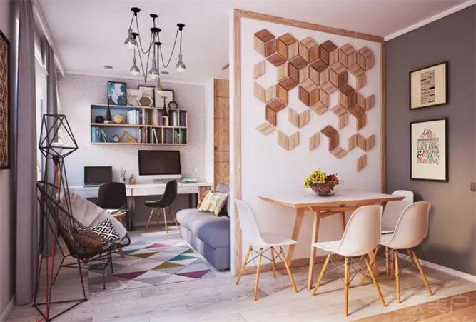 40平米的面积,按部就班的极简风格,将基础功能全部妥善安置。用脚下的地板和瓷砖划分区域,自然舒适。阳台和窗在公寓的一侧,客厅沙发的背后是卧室,用一面玻璃隔开。这样,除了卫生间以外,每一个房间都有足够的自然采光。