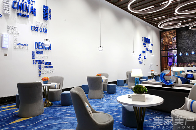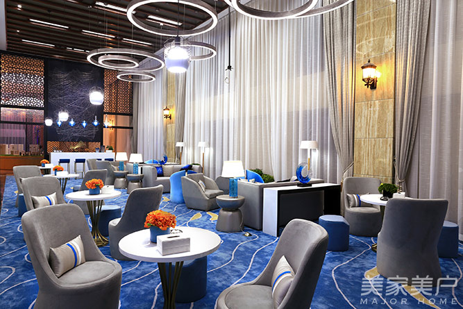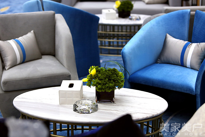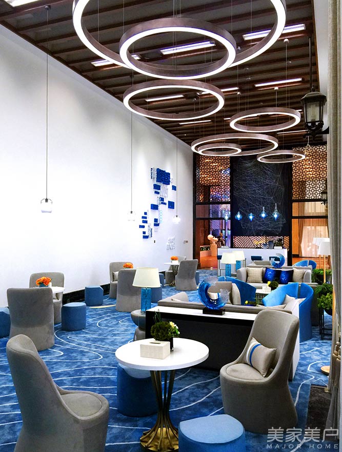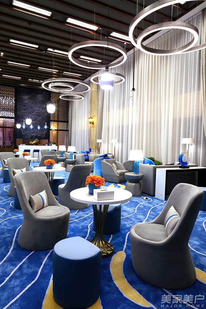 湖蓝色的魅力,温润而具有动感的色彩赋予了整个洽谈区空间的灵韵。
