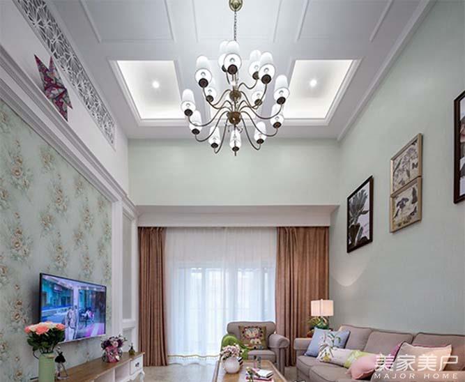 小编点评:现代美式追求华丽、高雅的古典风格。客厅色彩主调为白色。家具为古典弯腿式,家具、门、窗漆成白色。客厅用各种花饰、丰富的木线变化黄色、富丽的窗帘帷幄是西式传统室内装饰的固定模式,空间环境多表现出华美、富丽、浪漫的气氛。