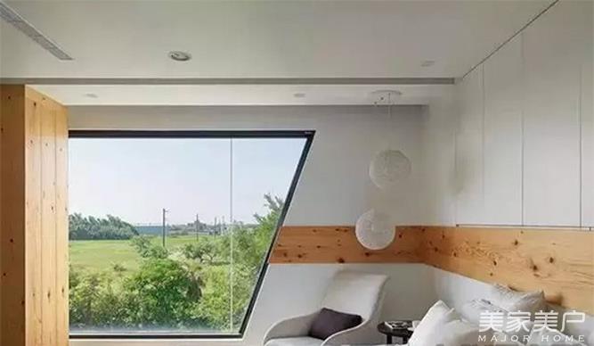 【单面窗也能玩创意】独一无二的斜角设计 只要改变窗型线条走向,利用斜角设计也能延伸视野、延揽满窗绿意;室内空间以清亮色调搭配木作,让窗外景致与窗内装潢融为一体。