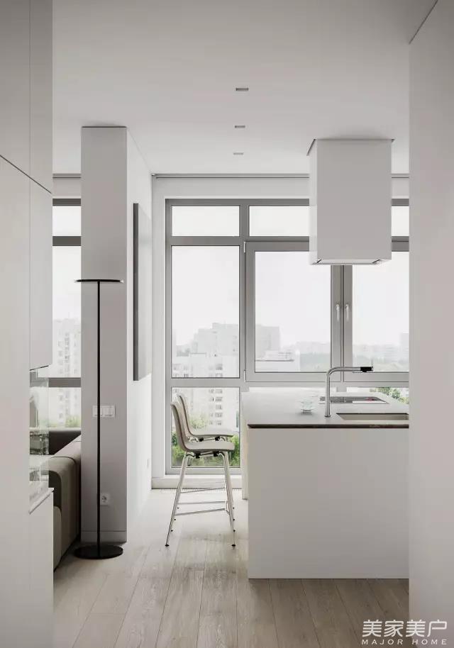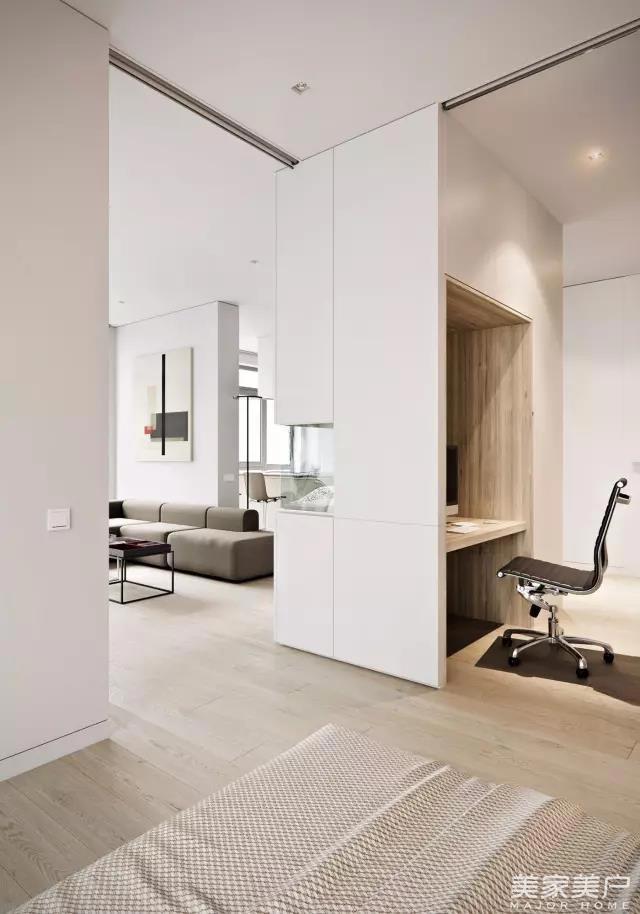 采用极简风格的设计,用色也以黑白灰色调为主。合理使用轨道门,让空间的开放与封闭更灵活。尤其是位于中心的工作区域,需要安静的时候能够完全的隔离。