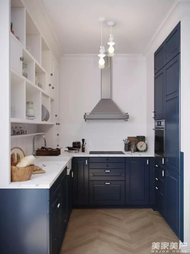 俄罗斯工作室 CARTELLE DESIGN 为一所97平米的公寓设计的空间方案,主人是一对年轻的夫妇。使用了蓝白配色,有韵味又不失朝气。注重小空间的利用,让不大的家里有更多的休息环境。
