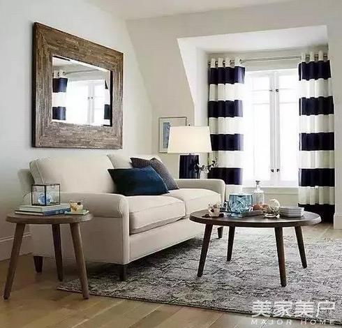 条纹窗帘没有花纹那么繁复,好搭配,要多考虑材质的问题。