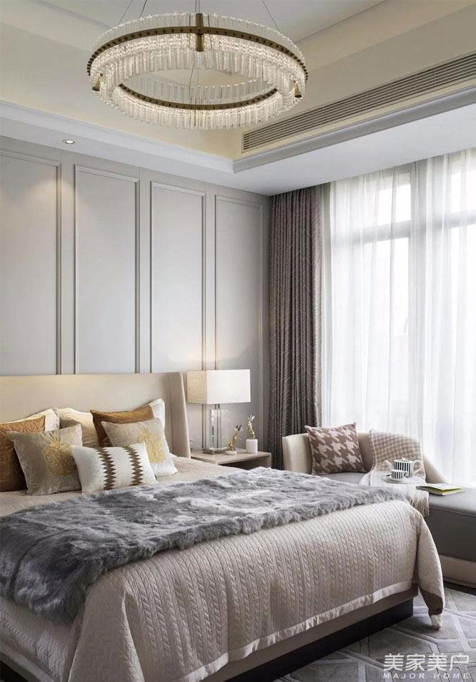 主卧设计温馨柔和,简洁的空间承接着煦和的自然光线,清浅的米色与白色交织,如絮般的温柔,如和风般的轻软,似乎具有抚慰人心的治愈效果。好的设计正在于细致的体验感受,而不只流于精彩视觉效果。