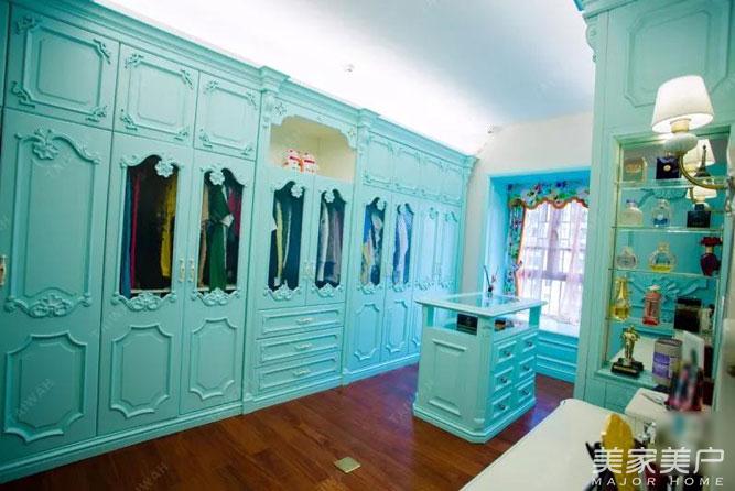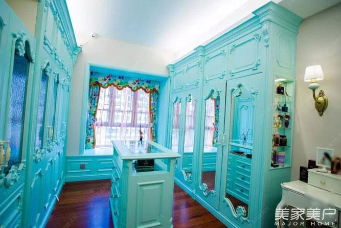 Tiffany蓝浪漫法式衣帽间,讲究精细的外观设计,在线条、比例设计上也能充分展现丰富的艺术气息,从每一个角落和细节之处散发出贵族气质,充裕收纳的同时也很有时尚美感!